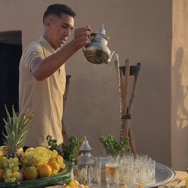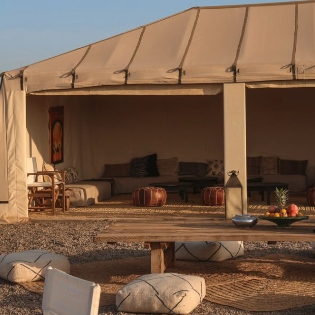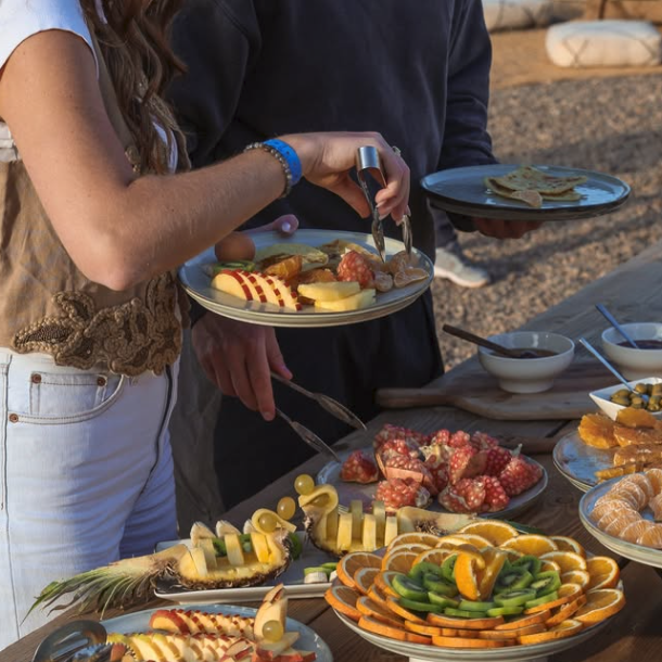 - Petit déjeuner typique et copieux à bord ou sous notre tente berbère