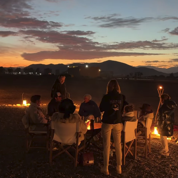 - QualitéChez Maroc Montgolfière, nous mettons un point d'honneur à proposer une expérience inoubliable et de 1ère qualité à nos clients. Pour cela, nous assurons un premier vol avec le lever du soleil garanti ! Nous vous offrons le ciel à bord de l'une de nos nacelles tout confort : Vous volerez ainsi en toute convivialité. Nous aimons participer à l'économie locale et contribuons au développement des villages que nous survolons. Vous profiterez ainsi d'un copieux petit déjeuner, préparé par les habitants de ces villages, qui vous attendra après votre vol sous une tente berbère parfaitement aménagée pour vous accueillir.