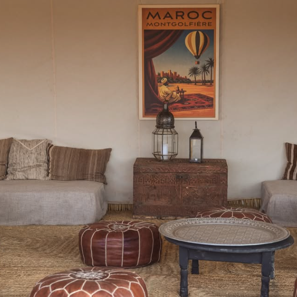 Chez Maroc Montgolfière, nous mettons un point d'honneur à proposer une expérience inoubliable et de 1ère qualité à nos clients. Pour cela, nous assurons un premier vol avec le lever du soleil garanti ! Nous vous offrons le ciel à bord de nos nacelles tout confort ; vous volerez donc en toute convivialité et toute sécurité grâce à nos 35 années d'expérience. Nous vous invitons à venir passer un moment d'exception et de douceur en notre compagnie avec une vue « imprenable » sur le désert, la palmeraie, les villages et la majestueuse chaîne des montagnes de l'Atlas. Après votre vol, un copieux petit déjeuner typique (sous forme de buffet) vous sera servi sous l'une de nos tentes berbères parfaitement aménagées pour vous accueillir. De plus, toujours soucieux de participer à l'économie locale, la plupart des produits qui vous sont servis à cette occasion sont préparés par les habitants des villages avoisinants.